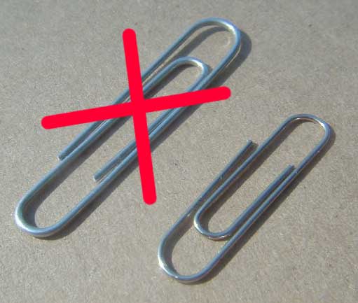 If you have an aluminum track, ground it. A large chunk of metal isolated on a wooden or linoleum floor can build up considerable electrostatic charge, especially in winter when the humidity is low. You know how a spark can jump from your finger to the doorknob after walking across the floor? Same thing, only the track is a lot bigger than a doorknob, and has a lot more electrical capacity. If you plug your computer into electronic finish lines or other items near the metal track, you could damage your computer with one of those sparks. Secure a wire under one of the track's assembly screws, and run it over to a metal electrical conduit or cold water pipe. Make a good solid connection, not a tentative one. Help! I can't seem to make communication between the Judge and my computer. Is there a good way to tell whether the Judge or cables are defective, or if my computer just not set up properly? Yes! Do the Paper Clip Test.